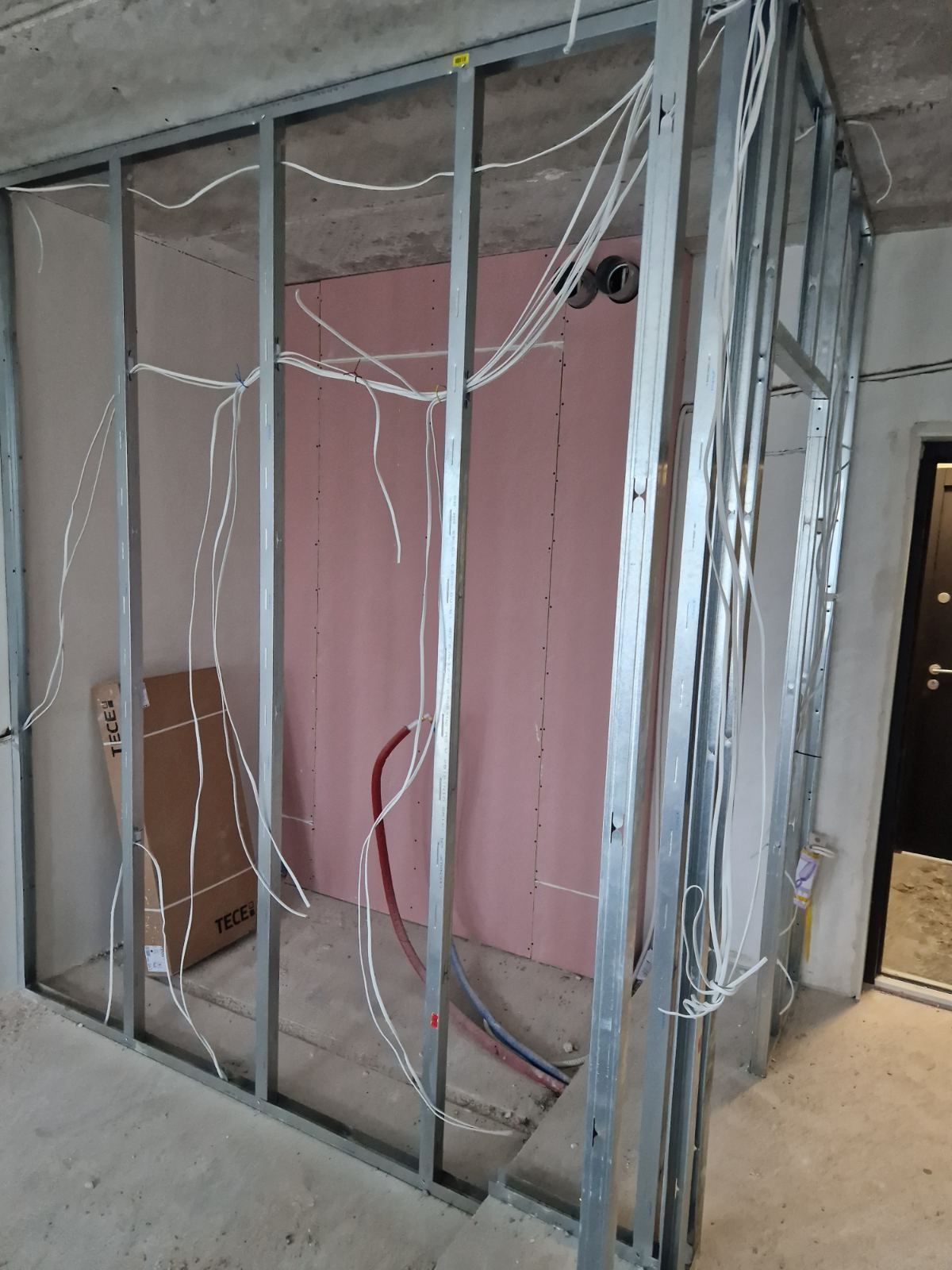 Sustiprinimas. Montavimo metu numatome vietas, kur bus kabinami sunkūs objektai (TV, lentynos, spintelės, radiatoriai). Šias vietas sustipriname specialiais tvirtinimo profiliais ar dyliais dar prieš uždarant karkasą.